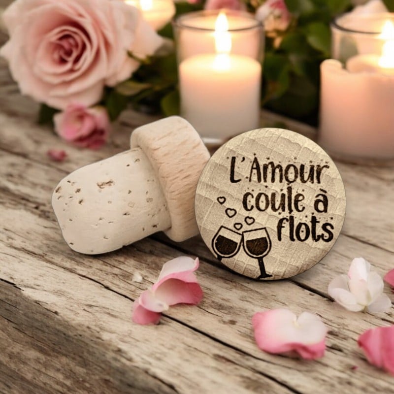 Comme le vin, l’amour se bonifie avec le temps, se savoure lentement et surtout… se partage. Ce bouchon est plus qu’un simple accessoire : c’est un symbole, un petit messager de tendresse à glisser sur votre table ou à offrir à la personne qui fait battre votre coeur.