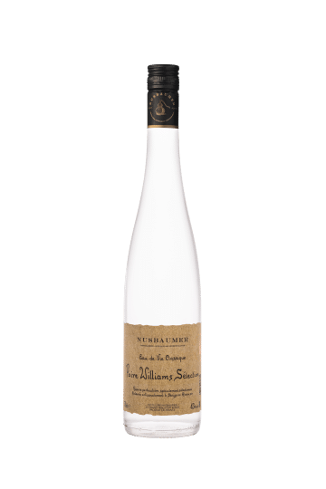 Cette eau-de-vie Poire Williams Sélection est élaborée à partir de poires Williams jaunes et rouges, mises en fermentation pendant 4 semaines. Après fermentation, un temps de repos est accordé de 6 semaines afin de développer davantage les arômes du fruit. Après distillation, le coeur de chauffe est assemblé avec un ancien distillat en cuves inox, puis réduit au degré grâce à l’eau de source de Steige ; d’une grande pureté car filtrée naturellement par le schiste vosgien ; avec une filtration à froid pour parfaire la fabrication.