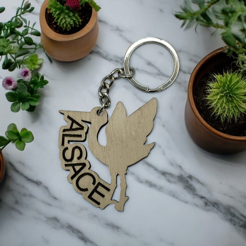 Porte-clés en peuplier « Cigogne Alsace ». Boréo s’est donné pour mission de sublimer vos clés, et fabrique ces portes-clés dans son atelier Strasbourgeois, d’un diamètre de 4 à 5 cm.
